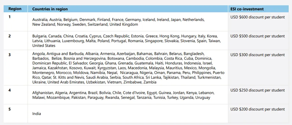 Please refer to the table for details. For bookings on our public schedule, Readynez offers you to register learners for a matching amount. E.g. If you want to book a learner from UK on any of the ESI eligible courses, Microsoft will contribute with 600 USD and you’ll only have to pay 600 USD yourself. This applies to all eligible courses regardless of duration.